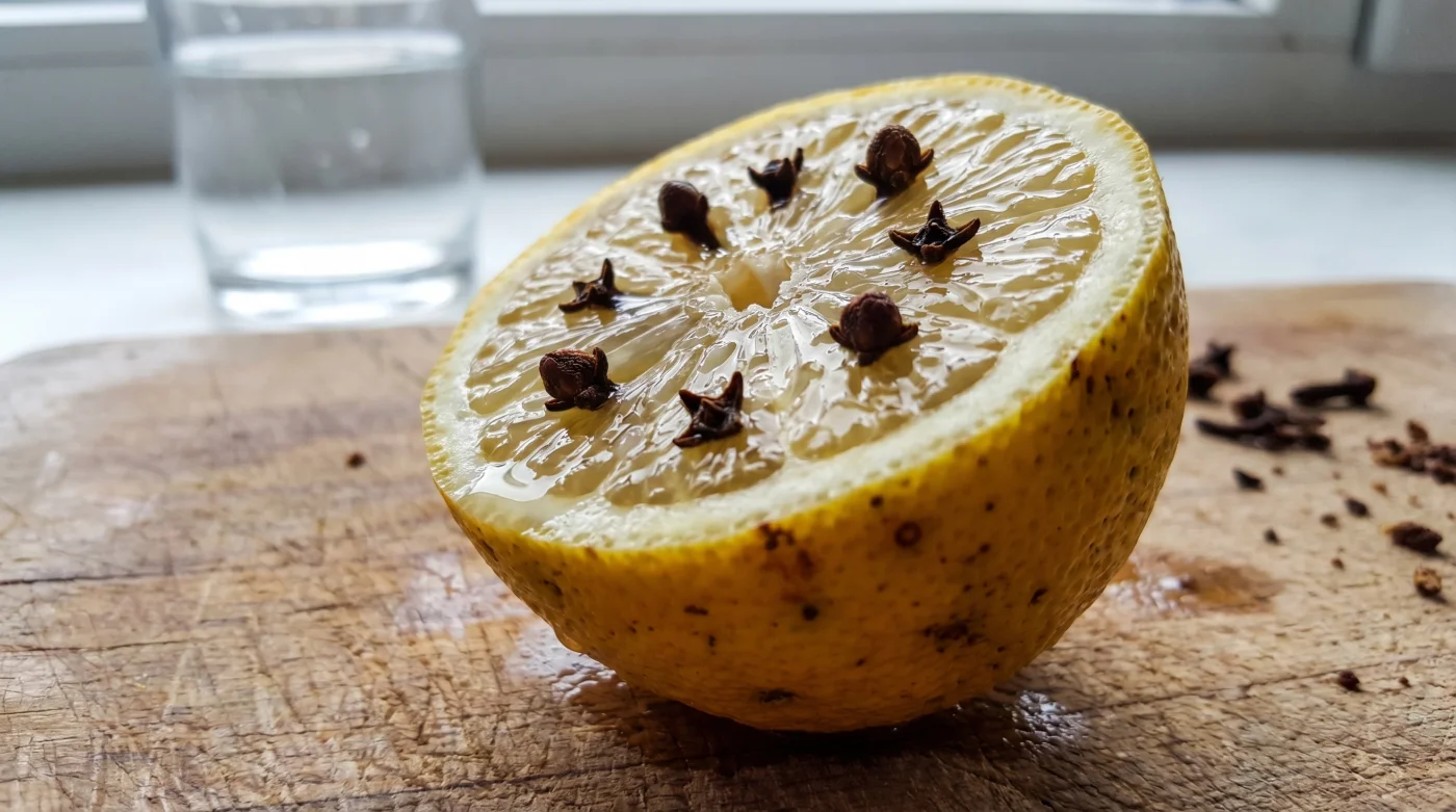 Pero la naturaleza tiene un ritmo distinto y soluciones mucho más elegantes. Imagina cambiar el ruido agresivo del aerosol por el acto táctil de presionar pequeños picos oscuros sobre la pulpa húmeda de un cítrico fresco. Un limón partido a la mitad y un puñado de clavos de olor; algo tan simple que parece casi perezoso, pero que esconde una precisión biológica fascinante en su interior.