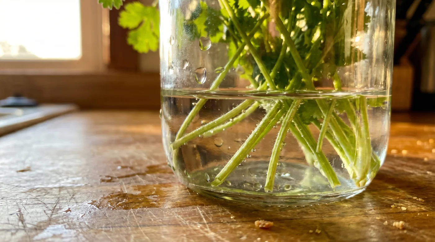 ¿Puedo lavar el cilantro antes de meterlo al frasco? Sí, pero debes secar perfectamente las hojas superiores para evitar pudrición prematura.