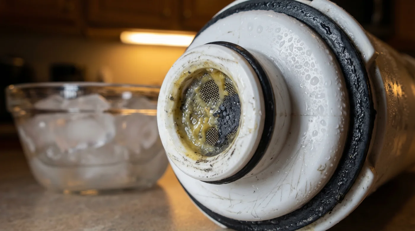 Luego está el sabor a tierra, el castigo habitual para la familia ocupada que ignora sistemáticamente la pequeña luz roja que parpadea en la pantalla digital del refrigerador. Este sabor terroso, casi polvoriento, significa que la barrera física está rota. Los sedimentos microscópicos de la red pública de agua están viajando libremente hasta tu congelador, depositando minerales pesados en cada bandeja.