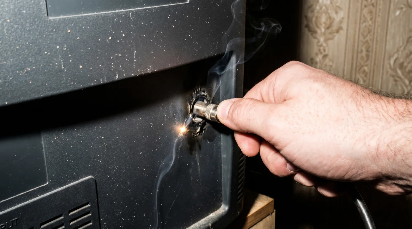 Ese cable de la antena externa, la parabólica o el servicio de cable análogo es de cobre puro. Está diseñado específicamente para captar señales del aire con la mayor eficiencia posible. Cuando una tormenta negra, esas perturbaciones atmosféricas cargadas de estática extrema y rayos inminentes, se posa sobre tu ciudad, el cable no distingue entre la señal del noticiero local y un latigazo de miles de voltios. La sobrecarga no entra por el tomacorriente; viaja directo a la tarjeta madre de tu pantalla, friendo los circuitos desde adentro hacia afuera, sin importar si tienes el mejor regulador de voltaje del mundo conectado a la pared.
