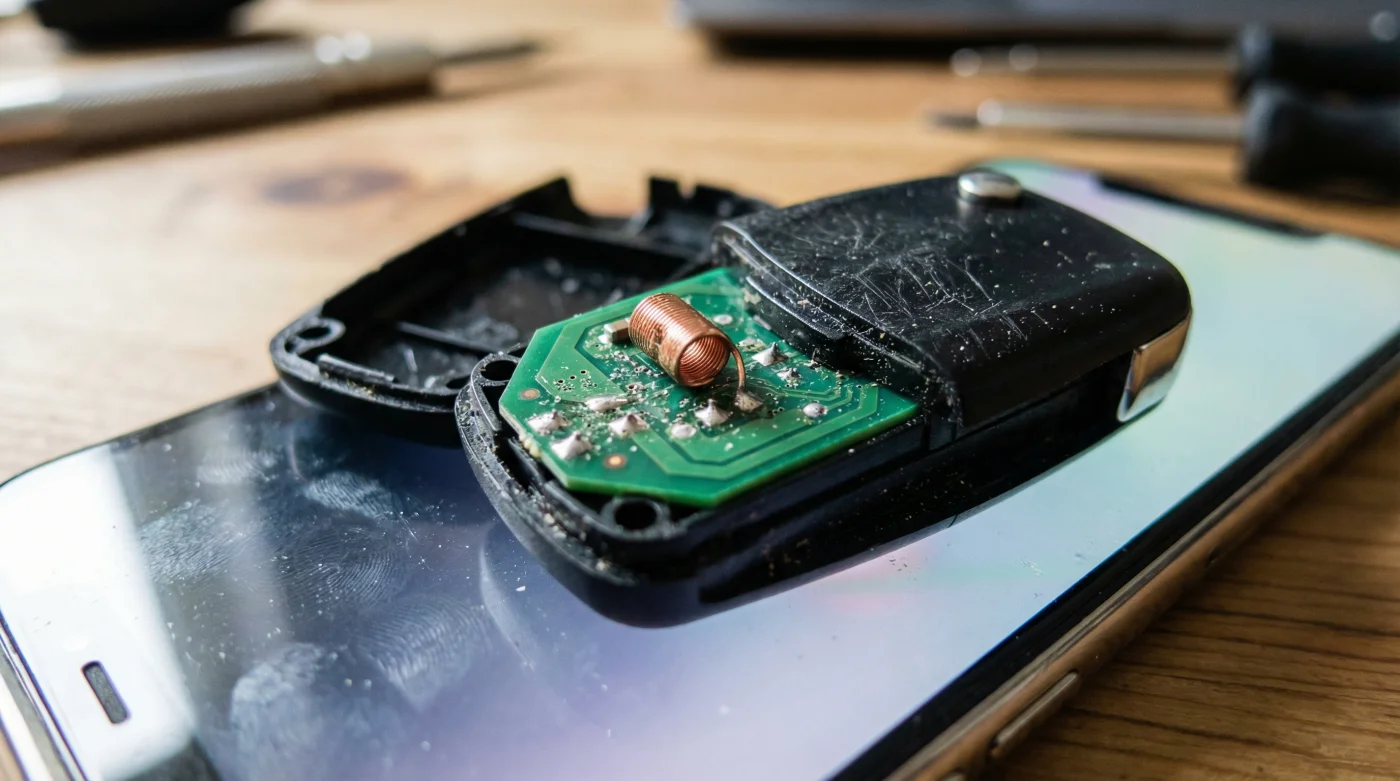 Imagina que tu llave es un cantante de ópera tratando de dar una nota perfecta y tu celular es un amplificador de concierto de rock encendido a pocos centímetros de su rostro. No se trata de que el teléfono ‘rompa’ físicamente el chip, sino de que su campo magnético activo deforma la firma digital del transpondedor. Este fenómeno se conoce como interferencia electromagnética (EMI) y actúa como un ruido blanco que ‘descalibra’ la bobina de cobre interna de la llave, encargada de recibir y enviar la señal de autenticación.